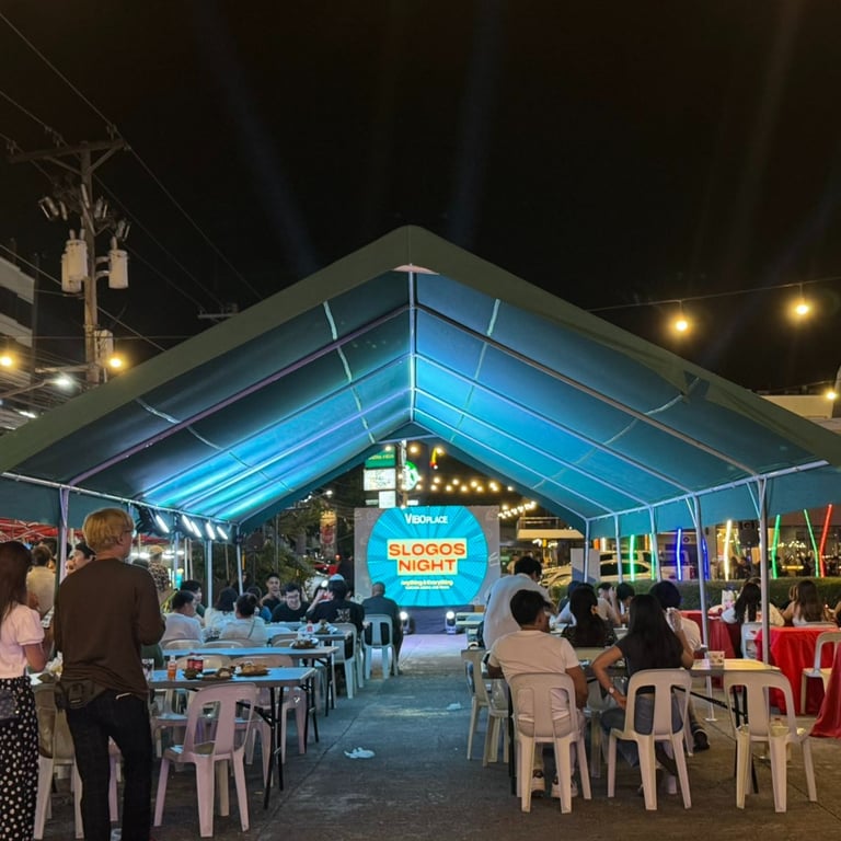 Slogos Night wrapped up an exciting weekend at Vibo Place with fun, laughter, and connection. Organized in collaboration with Slogos Night, the final evening brought together a vibrant crowd for an experience that blended games, spoken word, and throwback trivia under cozy tents and festive lights.